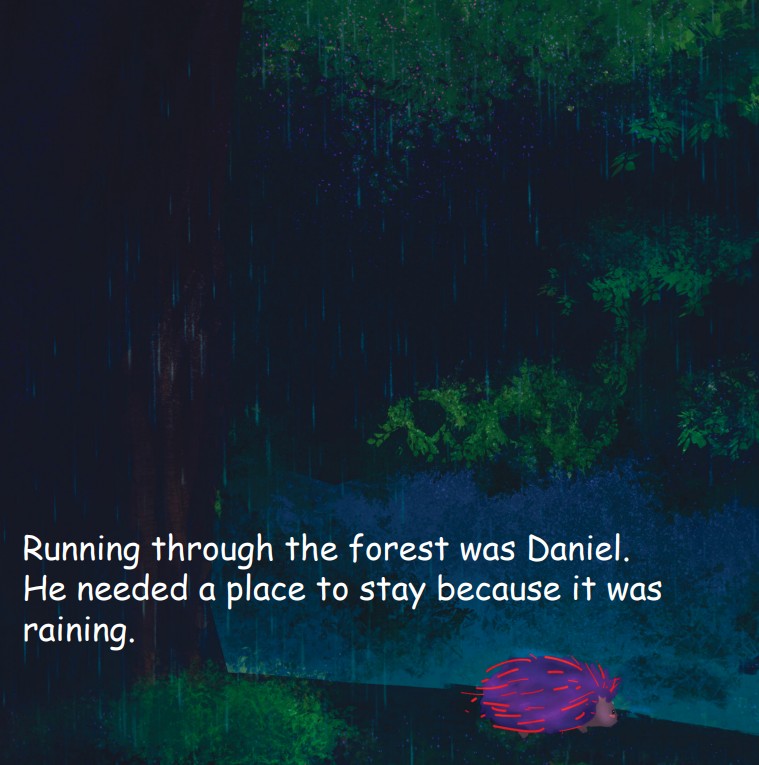 Daniel was alittle porcupine with soft blue fur and sharp red quills on his back and tail.